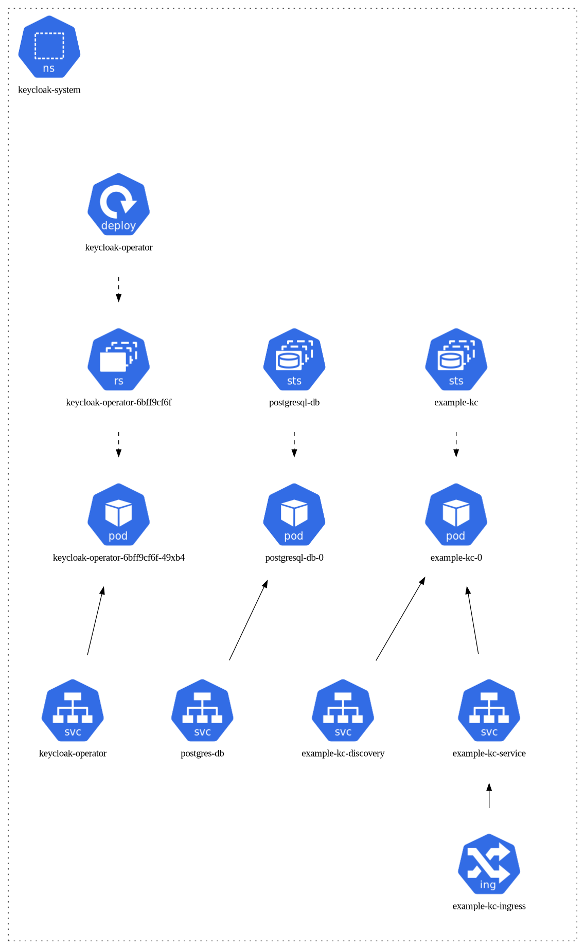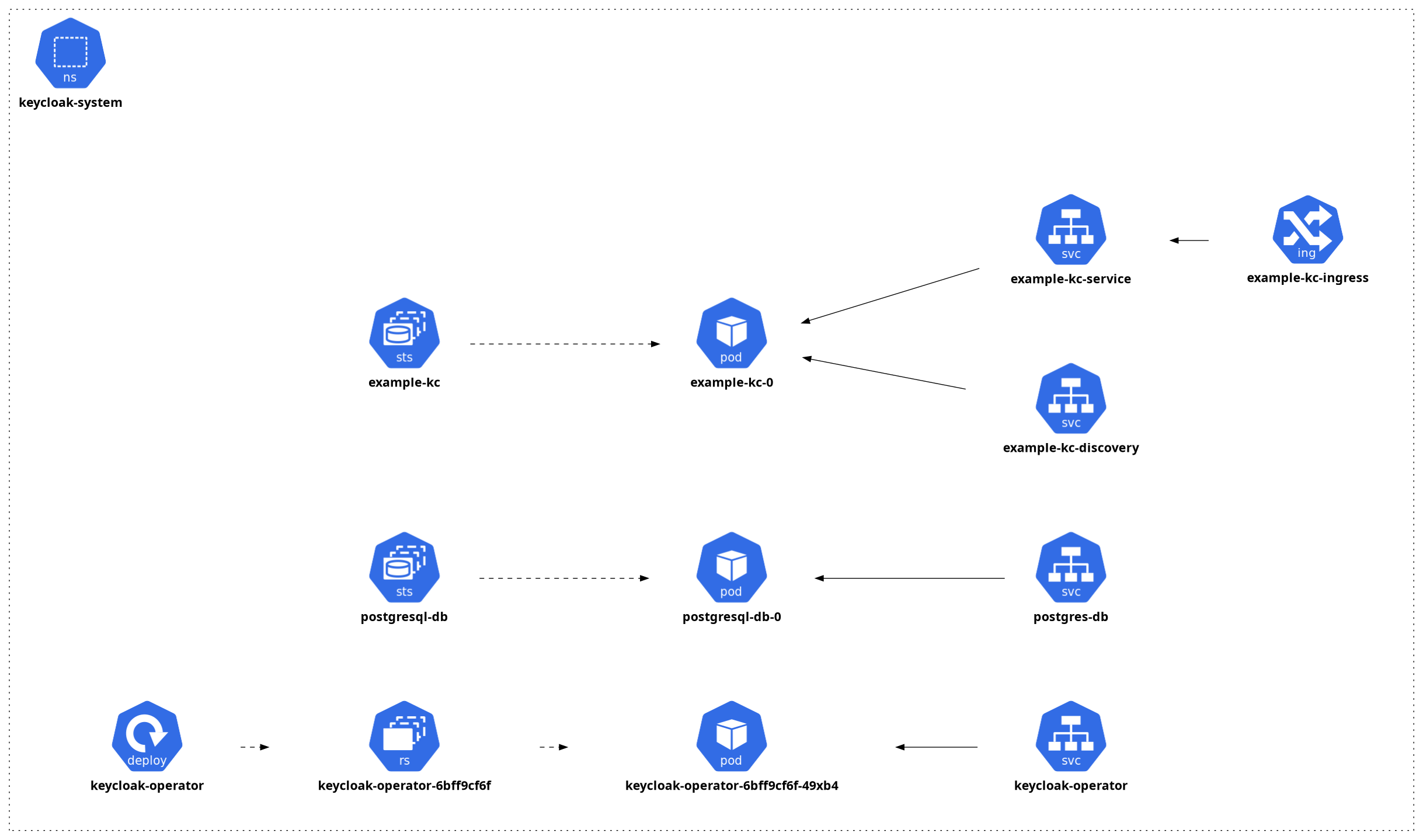 graph LR 60a85292-052f-210d-178a-3829b4f551bb((keycloak-...)):::Namespace 5e4e0c9f-db23-447a-8e91-0e3e2d6b0b20((keycloak-...)):::ReplicaSet a3e07832-474c-4042-983e-d098a760fb4d((example-kc-0)):::Pod 6bbe31ab-4d6b-4911-9dae-a311bae1dc87((example-kc)):::StatefulSet e07c0e8b-1c22-bfad-3ecd-a1cff0450321((keycloak)):::Container 8e77e145-c83d-2ddb-6123-72cf7664cd35((keycloak-...)):::Container c7468ee8-d08e-10f0-6c57-e8c5a2b7b319((api.crc.t...)):::Cluster 8d1b02ce-8247-449b-888c-5ab3770e7f07((keycloak-...)):::Deployment 0ba2caef-915f-41d8-b742-0c18cbaae490((keycloak-...)):::Pod c5bf27c6-b79a-48f1-b1e6-bf3392b9ed8a((postgresq...)):::Pod 97945256-8cc4-4e25-9f24-dfe2eac17b48((postgresq...)):::StatefulSet 93893b75-19b3-dcd9-6301-416922554914((postgresq...)):::Container f9b274dc-00d1-4767-954f-3f9c343f5547((example-kc)):::Keycloak 0ba2caef-915f-41d8-b742-0c18cbaae490 -- Container --> 8e77e145-c83d-2ddb-6123-72cf7664cd35 97945256-8cc4-4e25-9f24-dfe2eac17b48 -- Pod --> c5bf27c6-b79a-48f1-b1e6-bf3392b9ed8a c5bf27c6-b79a-48f1-b1e6-bf3392b9ed8a -- Container --> 93893b75-19b3-dcd9-6301-416922554914 c7468ee8-d08e-10f0-6c57-e8c5a2b7b319 -- Namespace --> 60a85292-052f-210d-178a-3829b4f551bb 60a85292-052f-210d-178a-3829b4f551bb -- Deployment --> 8d1b02ce-8247-449b-888c-5ab3770e7f07 60a85292-052f-210d-178a-3829b4f551bb -- Keycloak --> f9b274dc-00d1-4767-954f-3f9c343f5547 8d1b02ce-8247-449b-888c-5ab3770e7f07 -- ReplicaSet --> 5e4e0c9f-db23-447a-8e91-0e3e2d6b0b20 6bbe31ab-4d6b-4911-9dae-a311bae1dc87 -- Pod --> a3e07832-474c-4042-983e-d098a760fb4d a3e07832-474c-4042-983e-d098a760fb4d -- Container --> e07c0e8b-1c22-bfad-3ecd-a1cff0450321 5e4e0c9f-db23-447a-8e91-0e3e2d6b0b20 -- Pod --> 0ba2caef-915f-41d8-b742-0c18cbaae490 f9b274dc-00d1-4767-954f-3f9c343f5547 -- StatefulSet --> 6bbe31ab-4d6b-4911-9dae-a311bae1dc87 60a85292-052f-210d-178a-3829b4f551bb -- StatefulSet --> 97945256-8cc4-4e25-9f24-dfe2eac17b48